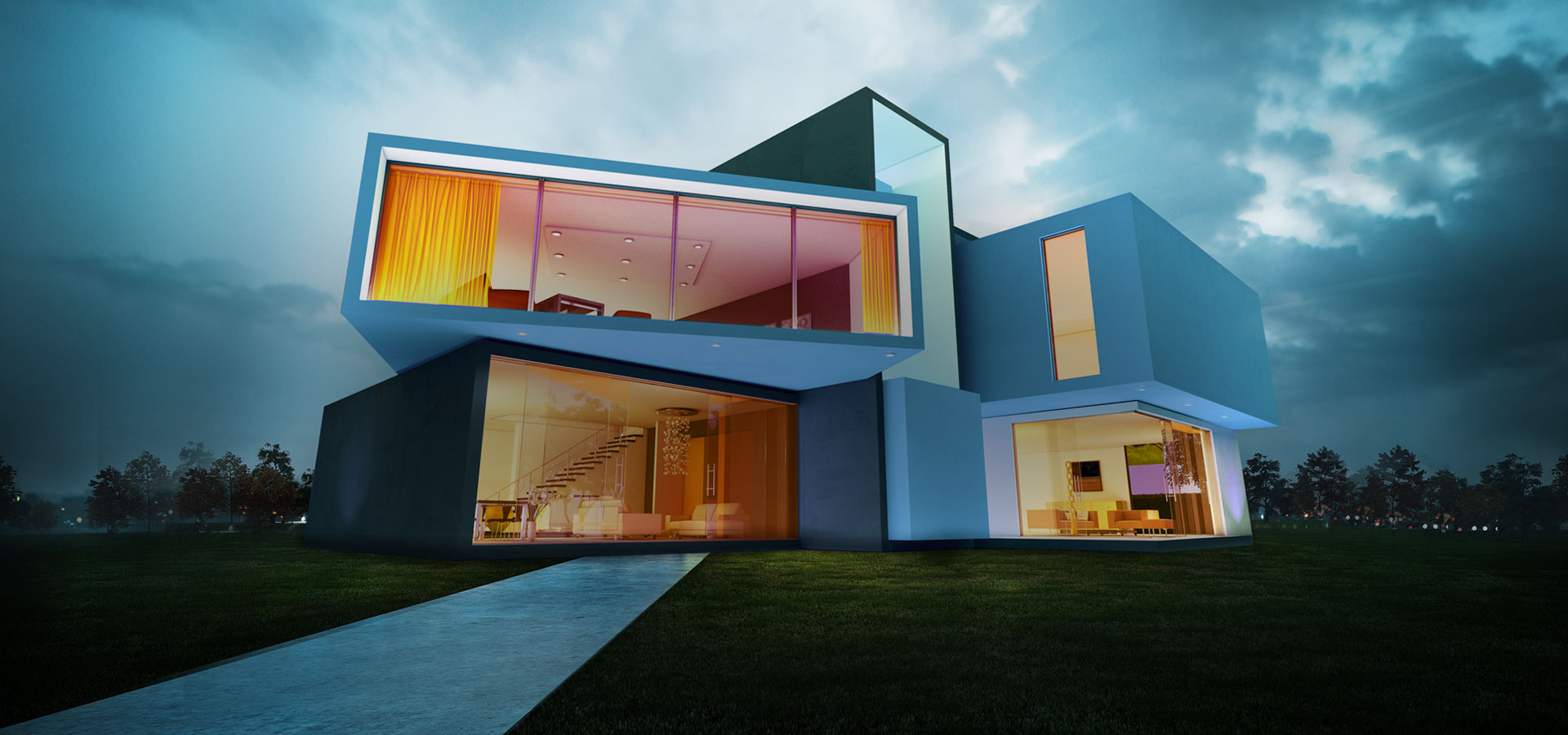 Triangle Concrete House on lake